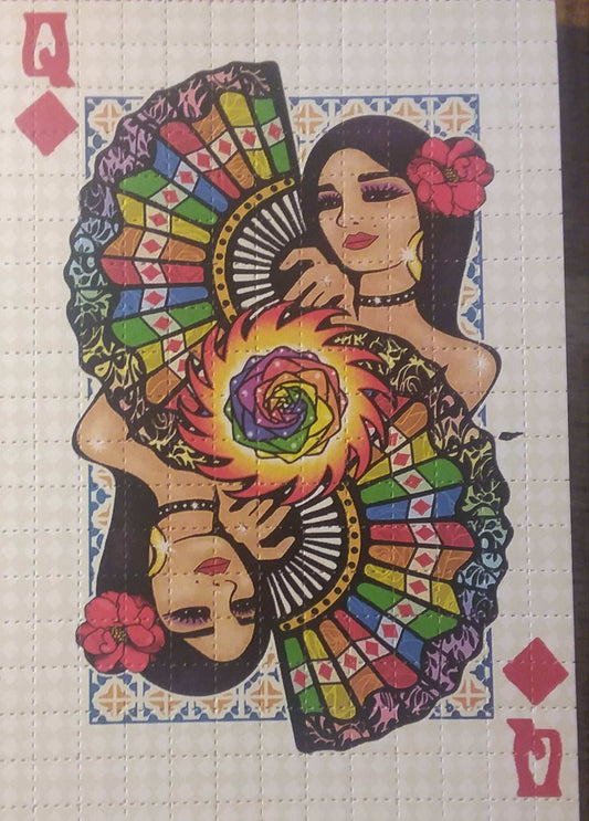 Bertha w/ Sunflowers R. Biffle design printed on prism material w Dayo Knight micro rainbow sparkle