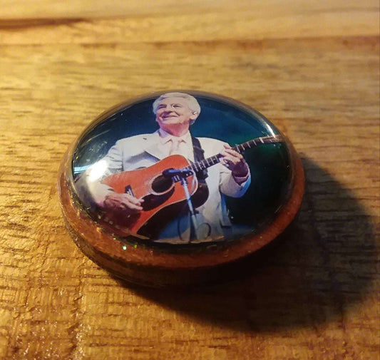 Bill Monroe Lapel Pin Glass on 1" shell disc